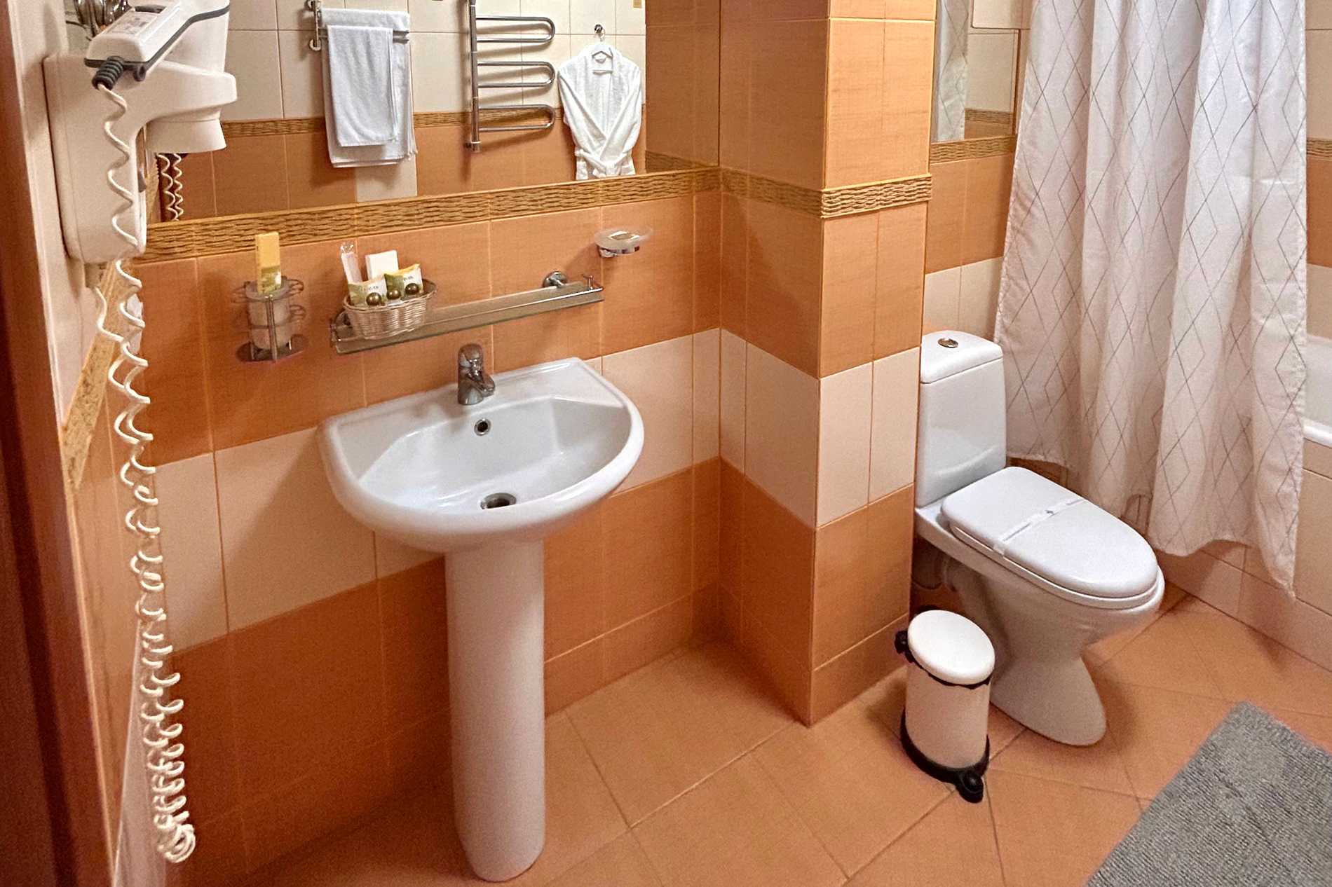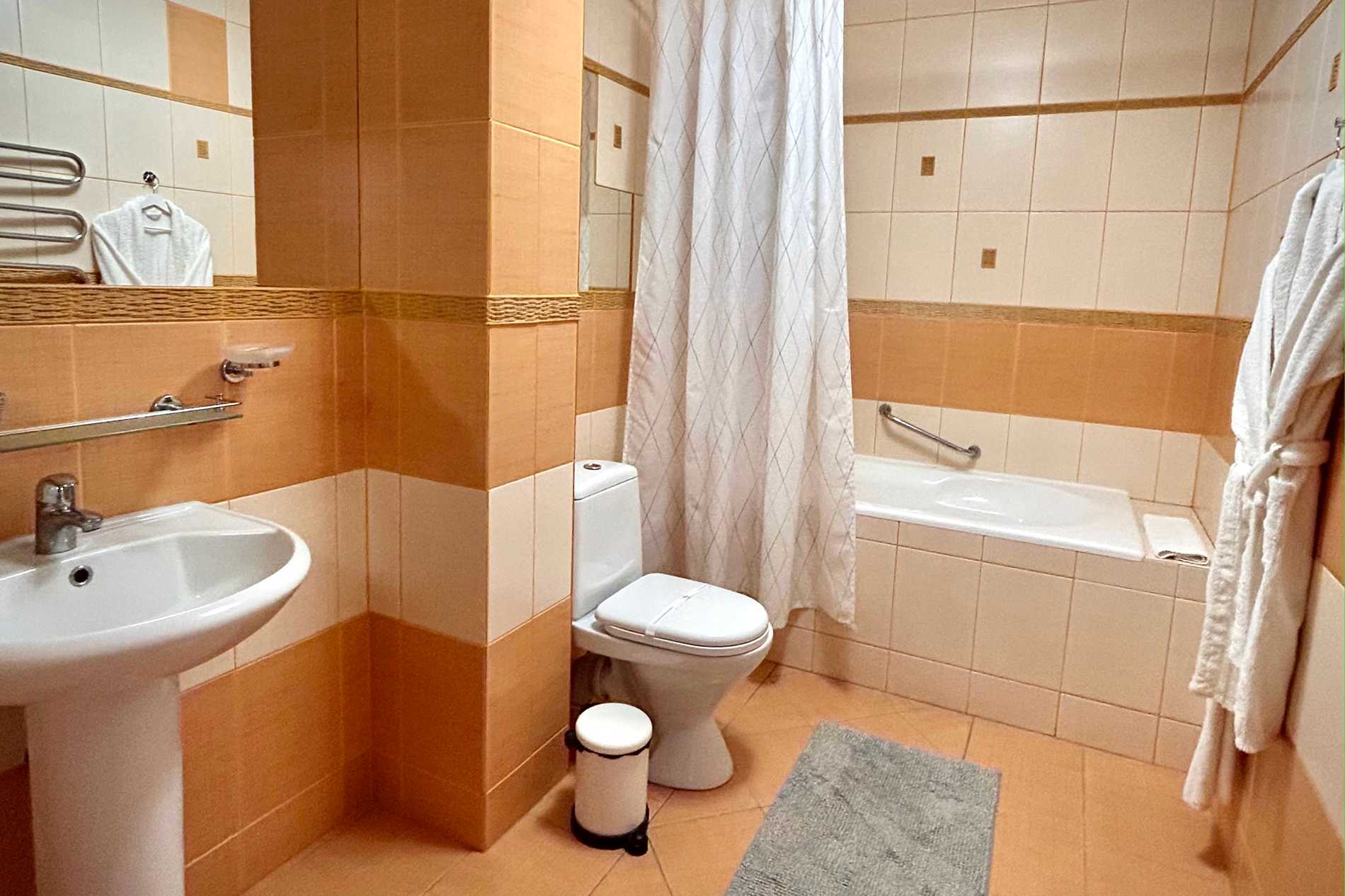 - Санузел: с ванной, тапочки, туалетные принадлежности, фен, халат