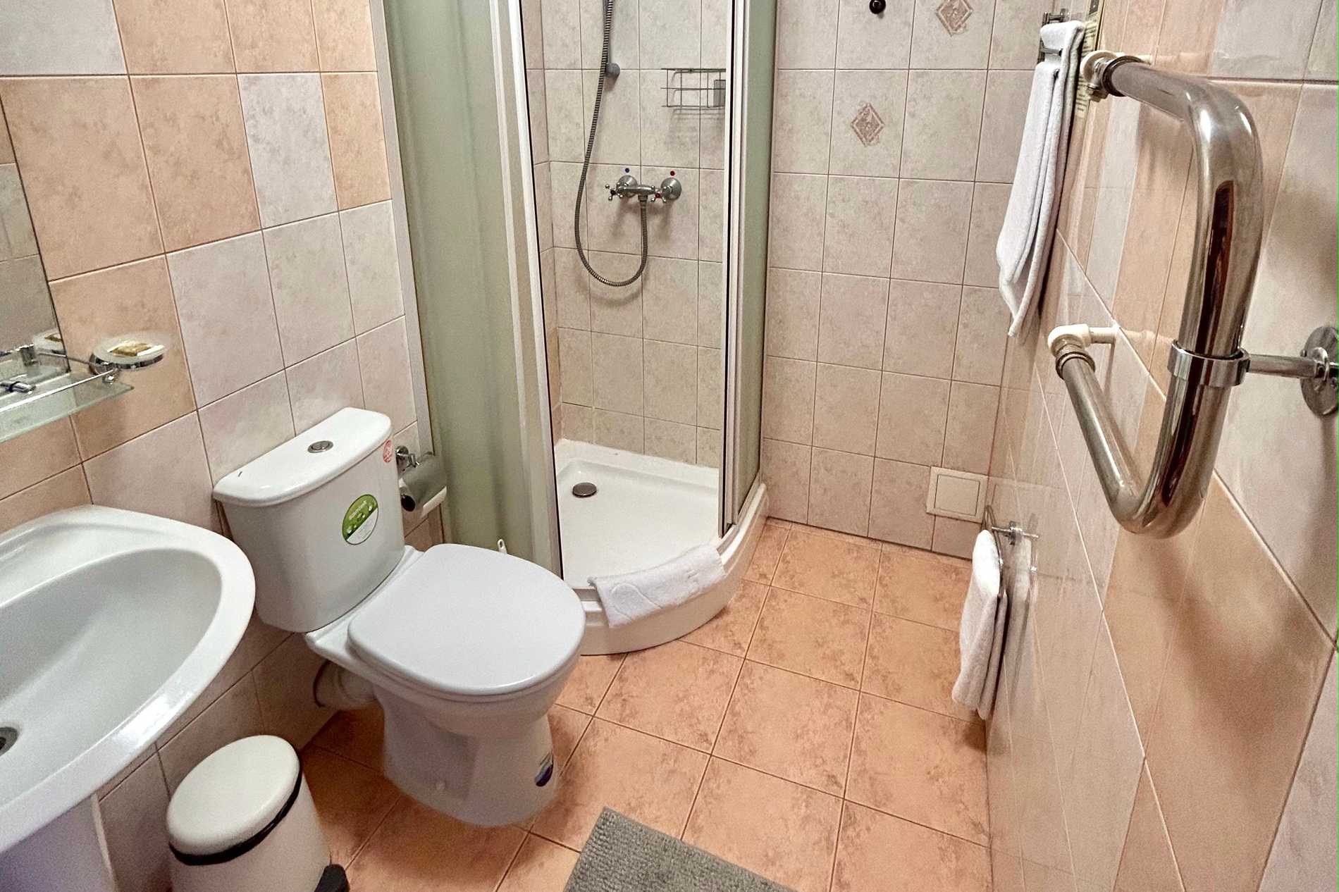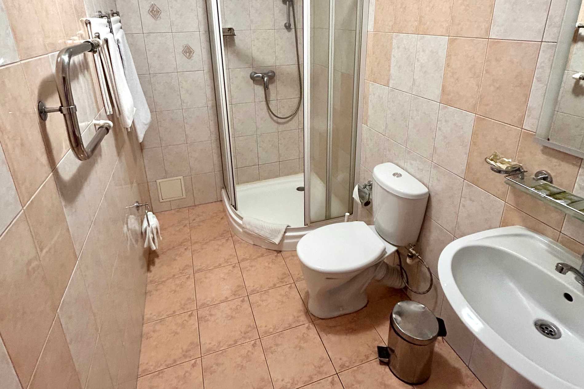 - Санузел: с душевой кабиной, тапочки, туалетные принадлежности, фен