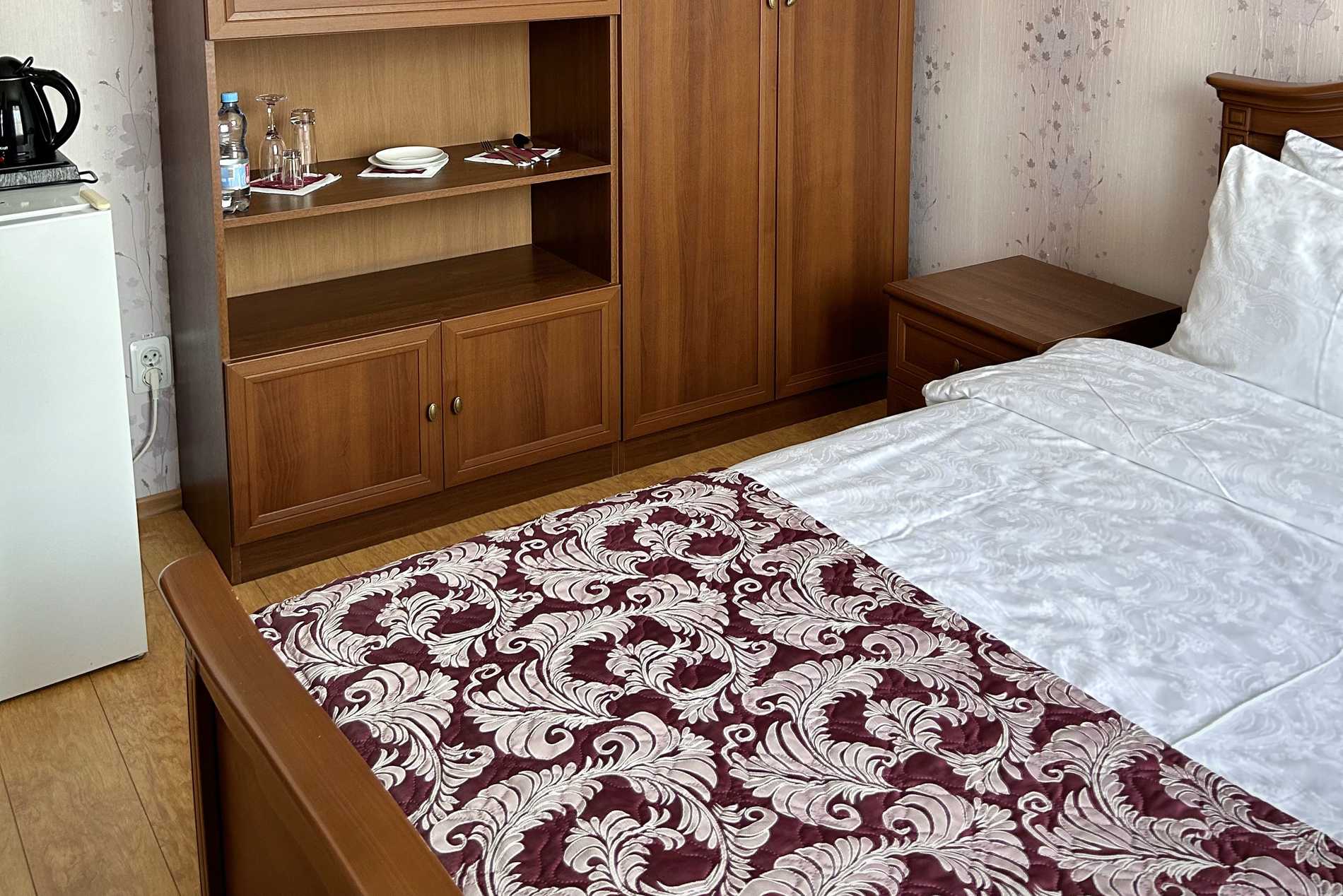 | Стандарт Стандарт 1-местный | 20 кв.м. | 1 чел. | Мебель (кровать полутороспальная, прикроватная тумбочка, стол, стул, шкаф), Оборудование (телевизор,... | |